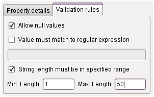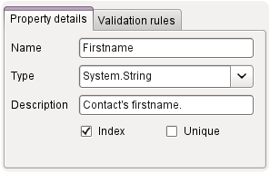 Each property can have validation rules attached to it. Available validation rules